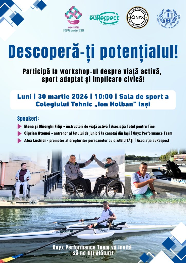 Ce bucurie ne-au oferit elevii de la Colegiul „Ion Holban” din Iași! Asociația euRespect, alături de Asociația Totul pentru Tine și Clubul Sportiv Onyx Performance Team, a organizat un eveniment dedicat elevilor cu și fără dizabilități din acest liceu, prin care ne-am propus să le deschidem perspectivele spre o viață activă, sport adaptat și implicare civică. ![]()