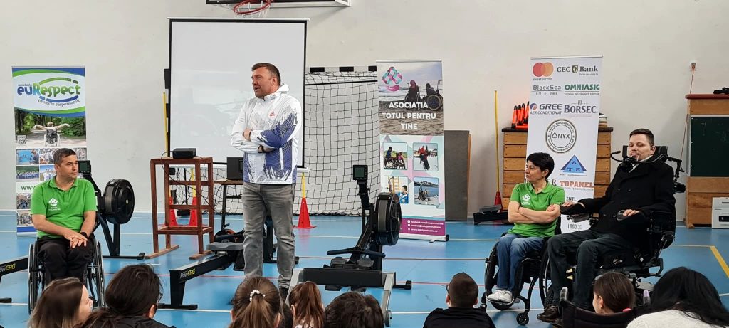 Elena și Ghiorghi Filip, prietenii noștri inimoși care reprezintă sufletul Asociației Totul pentru Tine, au împărtășit din vasta lor experiență de viață. Ca familie, fiind și ei utilizatori de scaun rulant, au oferit o veritabilă sursă de inspirație prin dedicarea lor și prin numeroasele activități desfășurate în sprijinul persoanelor cu dizabilități. Filip a vorbit despre performanțele sale sportive, despre experiența sa în canotaj și i-a încurajat pe elevi să descopere bucuriile sportului adaptat și impactul pozitiv pe care acesta îl poate avea în viața lor.